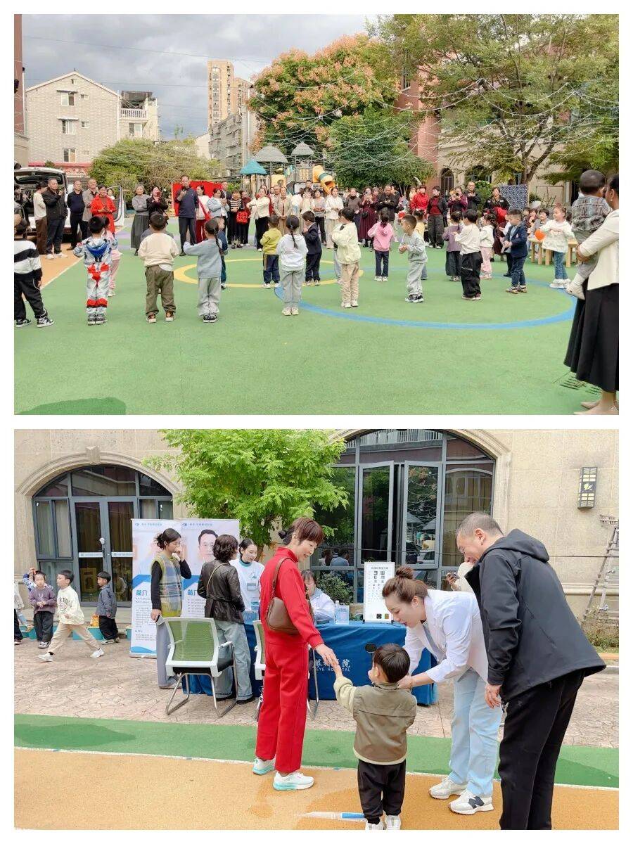 在幼儿园操场上,我院医护人员为孩童及参与活动的长辈们进行了基础视力检查及眼健康知识科普。