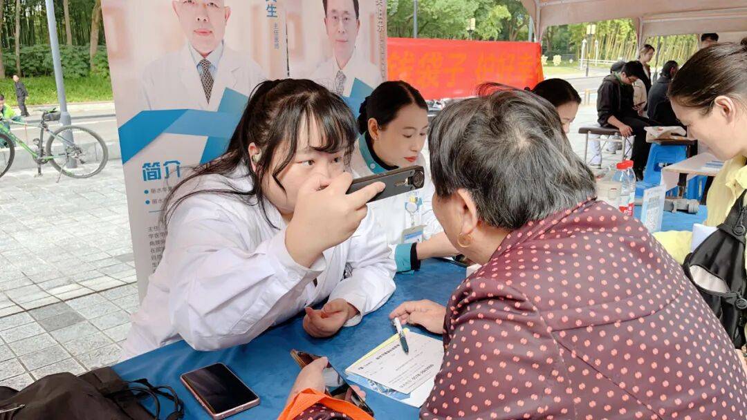 义诊现场,我院医护人员为前来咨询的中老年群体,提供了专业的眼健康检查,并针对初步筛查出的眼部问题,如白内障、老花眼、干眼症等常见老年性眼病,提供了个性化的护眼建议与科学的就医指导。